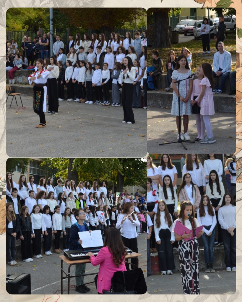 Програм је започео химном у извођењу школског хора, који је на флаути пратила Анђелка Гобељић из одељења 8/4, а на клавиру наставница Татјана Добросављевић.