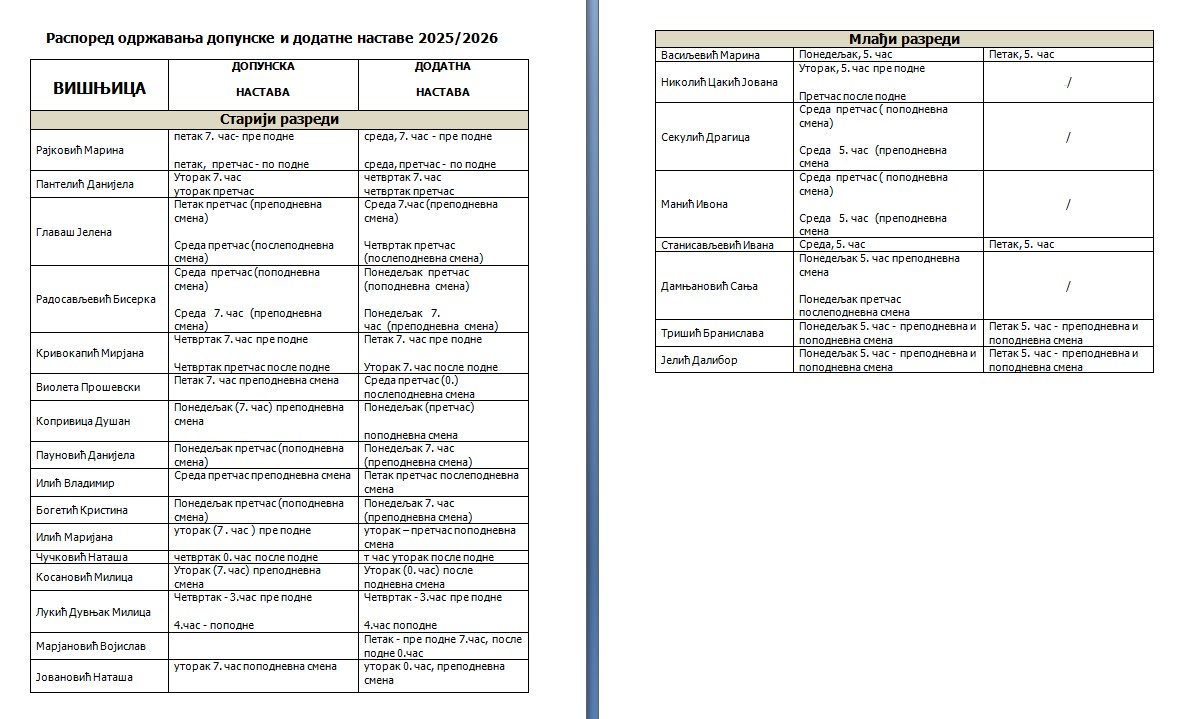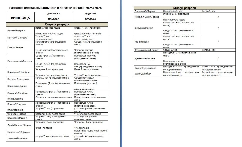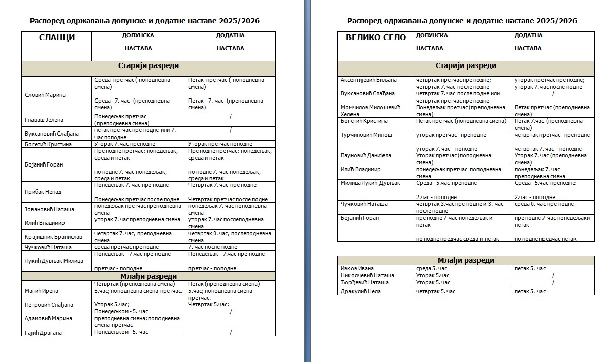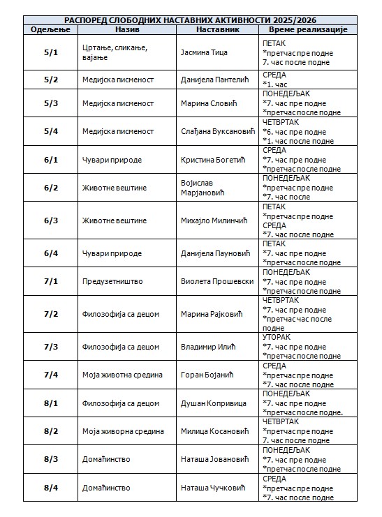 Допунска, додатна настава, СНА и секције