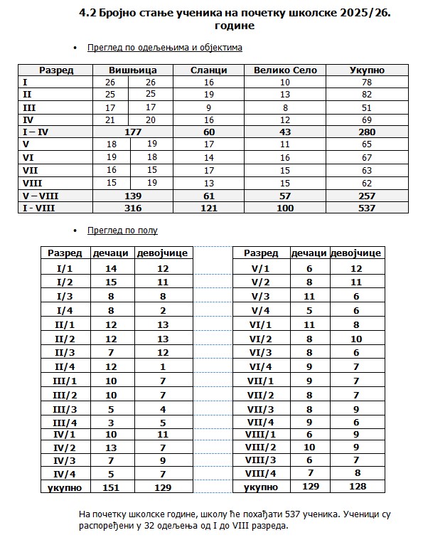 Подела одељења и предмета на наставнике, одељењска старешинства