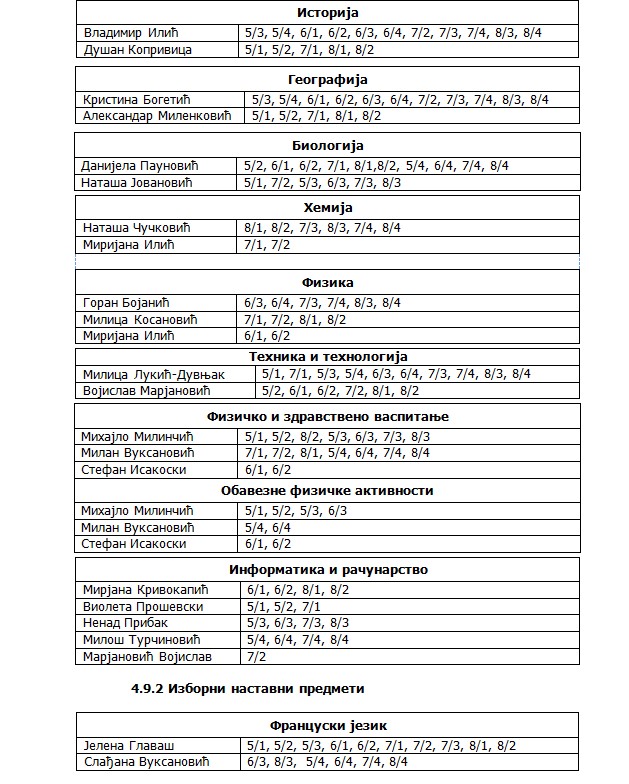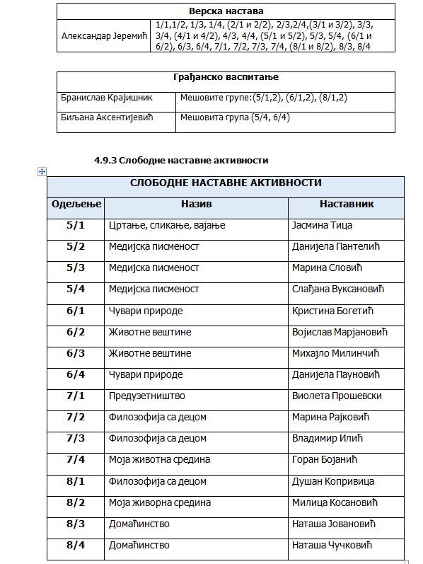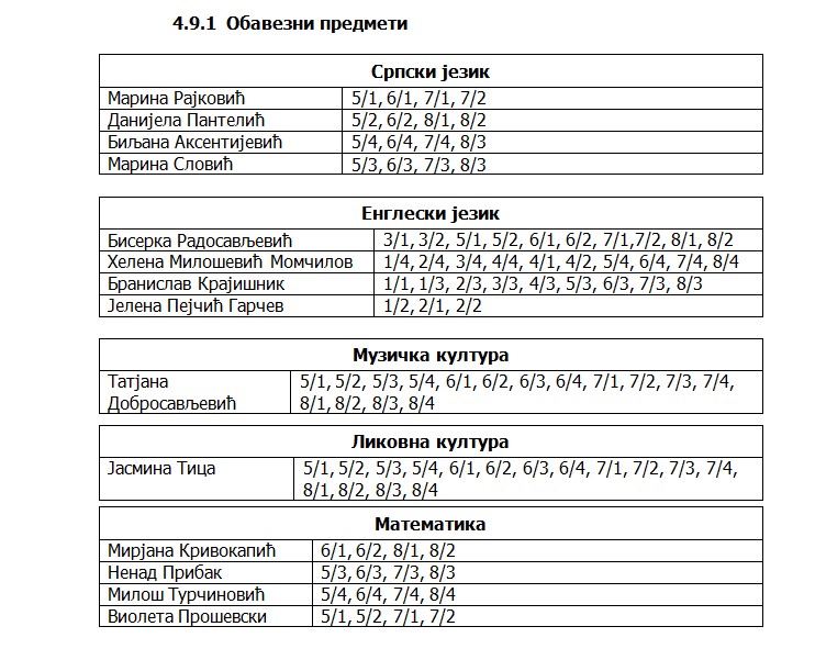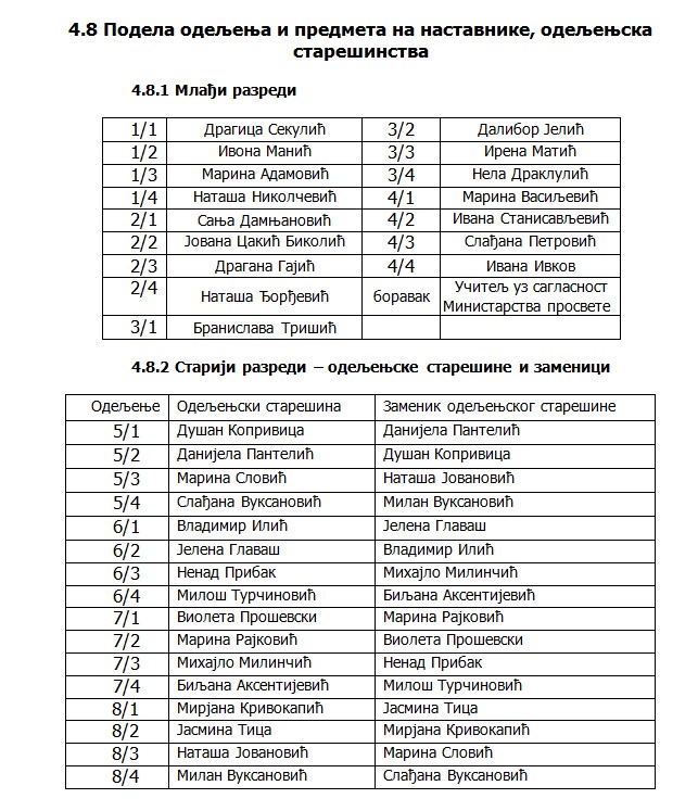 Подела одељења и предмета на наставнике, одељењска старешинства